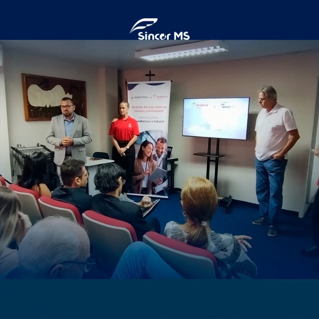 A sede do Sincor-MS foi palco, na manhã desta quarta-feira, 11 de março de 2026, de um café da manhã que reuniu corretores de seguros convidados, membros da diretoria da entidade e representantes da Bradesco Seguros. O encontro serviu como espaço para relacionamento profissional e apresentação de novidades voltadas ao mercado de planos de saúde.